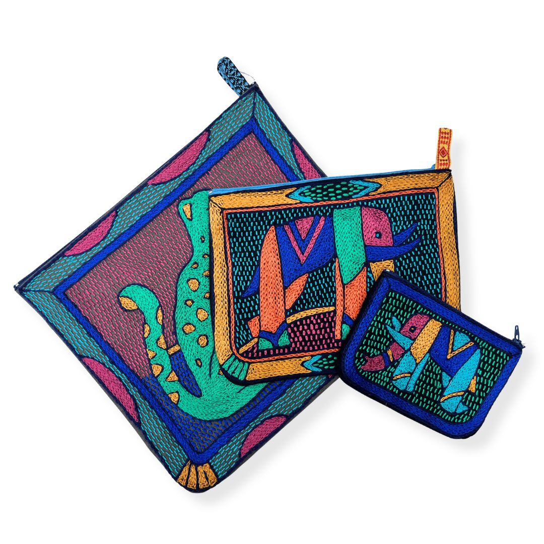 Collection of hand-embroidered zip pouches