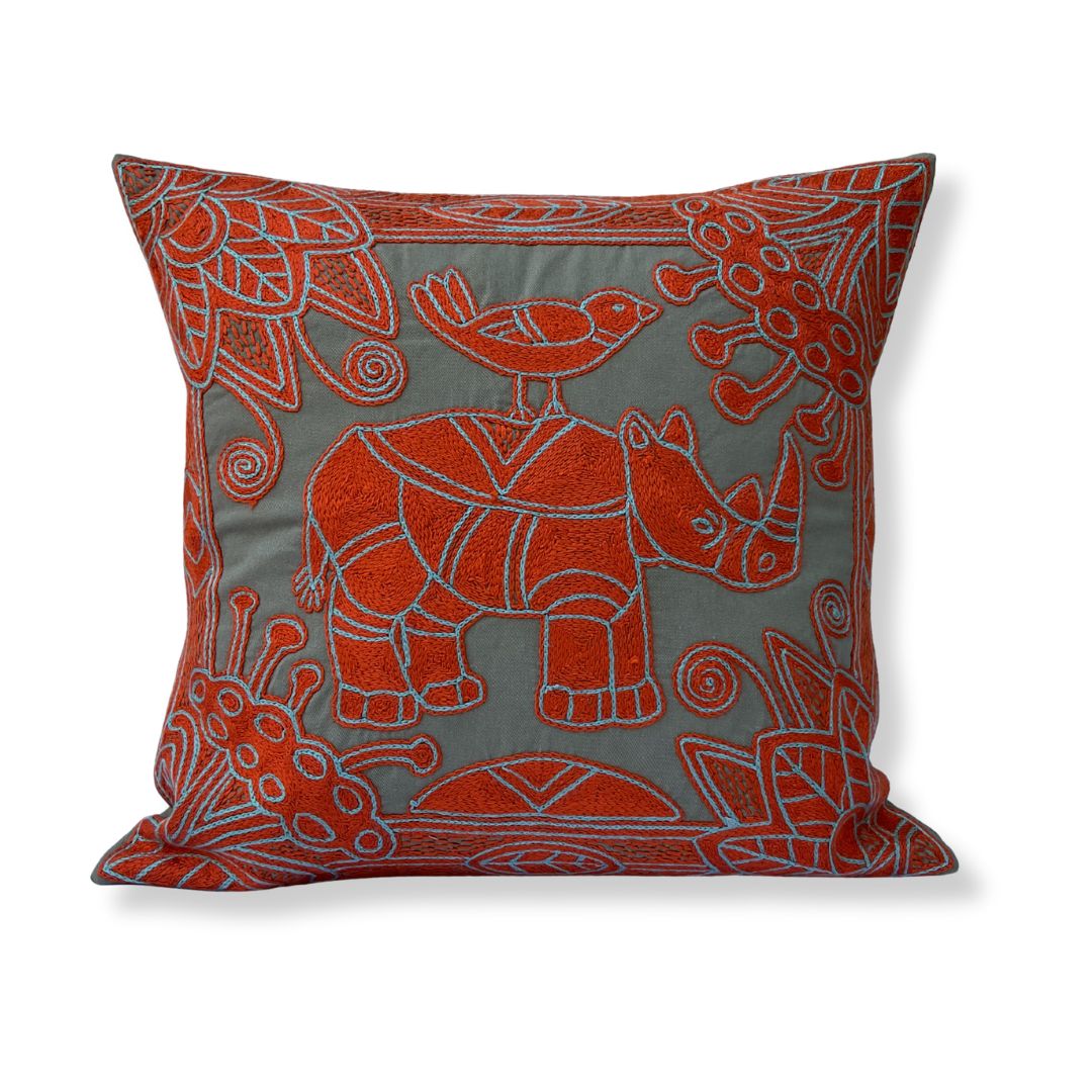 Valencia Rhino in Bloom Hand-Embroidered Cushion Cover