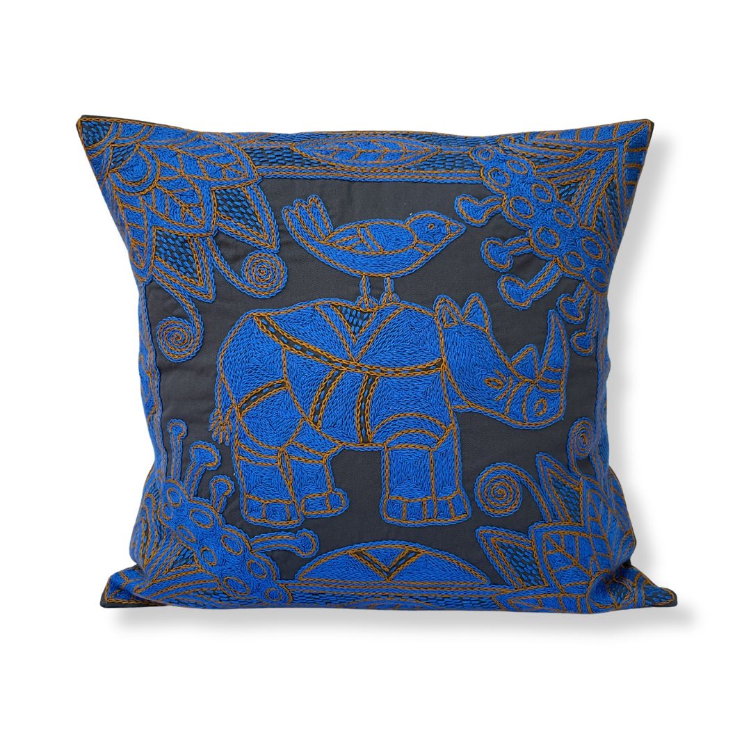Delpht Rhino in Bloom Hand-Embroidered Cushion Cover