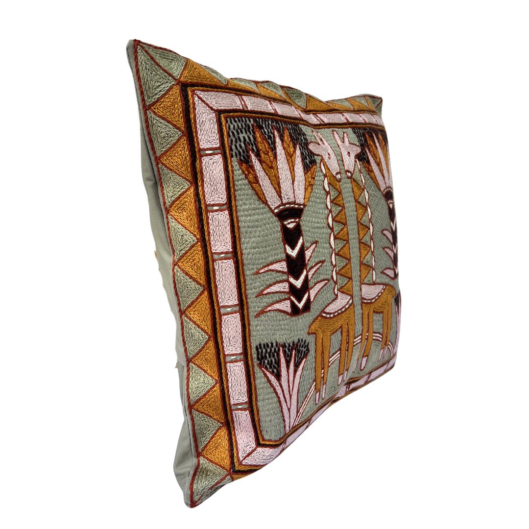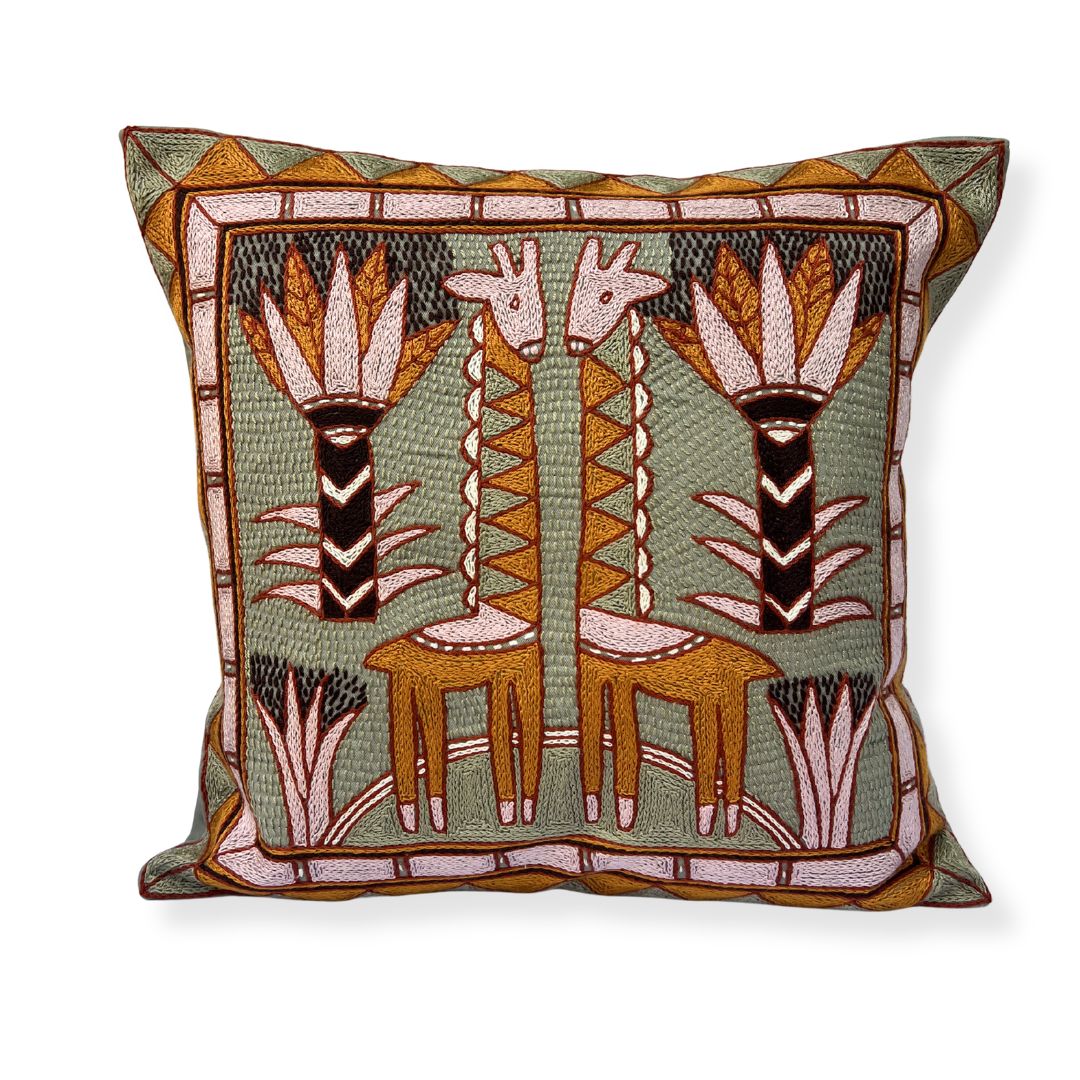 Namib Rust Giraffe Brothers Hand-Embroidered Cushion Cover