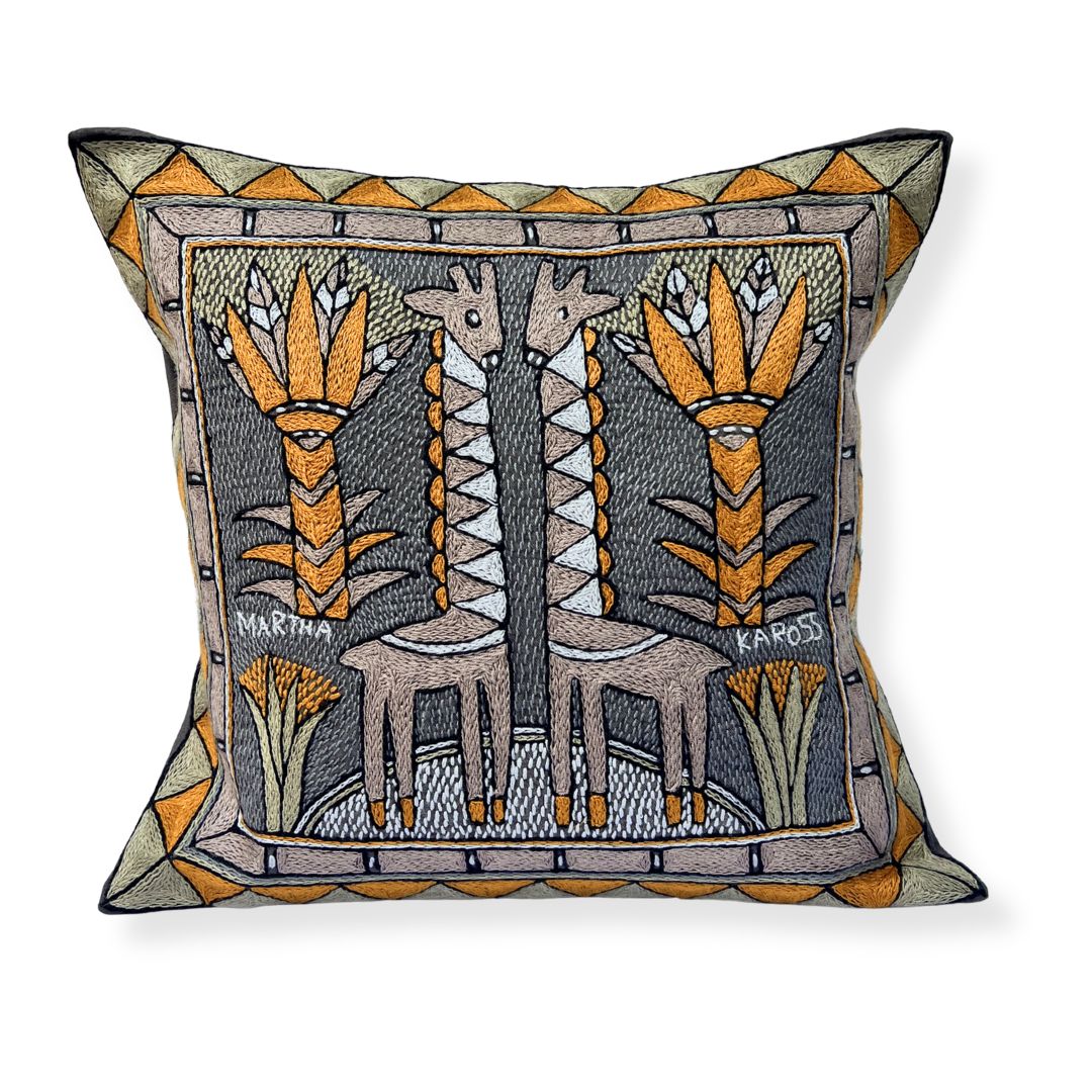 Ode to the African Savannah Giraffe Brothers Hand-Embroidered Cushion Cover