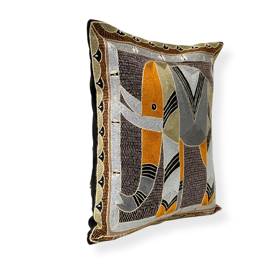 Ode to the African Savannah Elephant Hand-Embroidered Cushion Cover