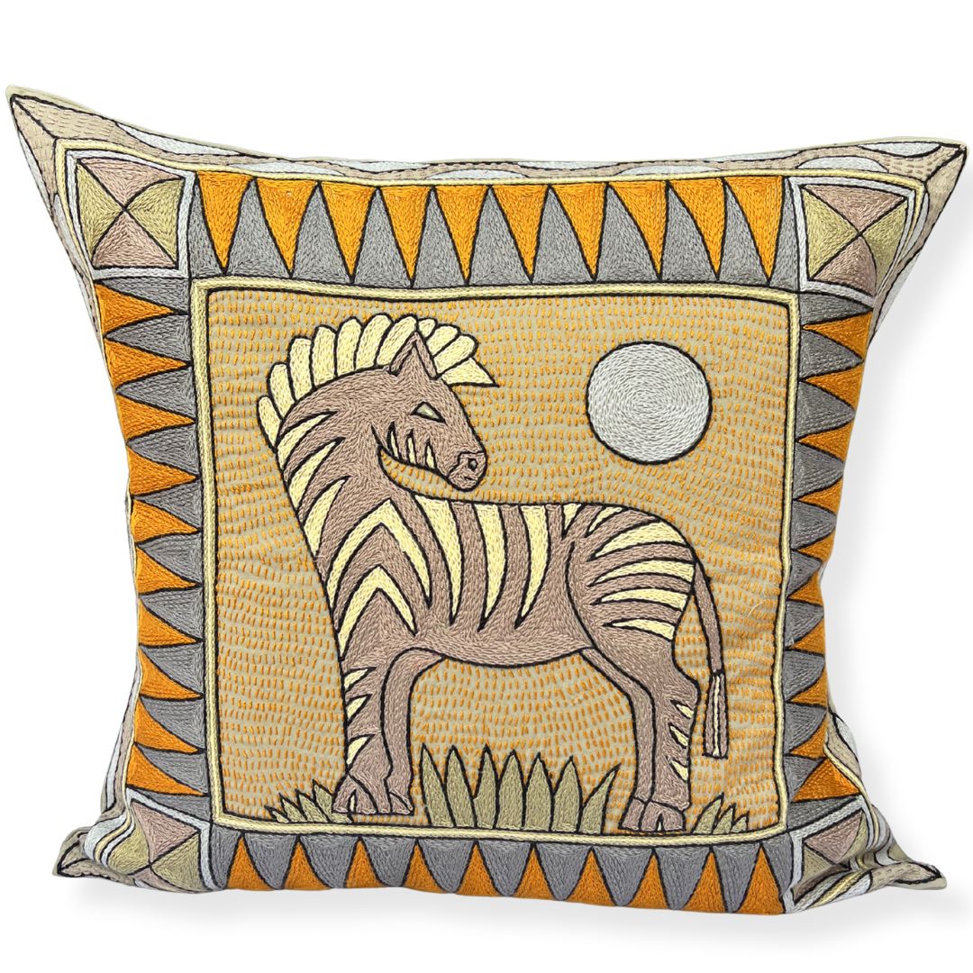 Ode to the African Savannah Zebra Sunset Hand-Embroidered Cushion