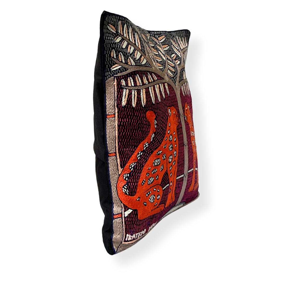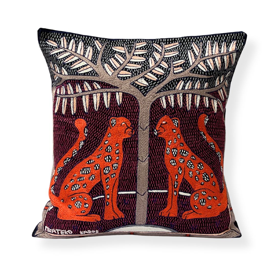 Ruby Sunset Leopard Pair Hand-Embroidered Cushion Cover