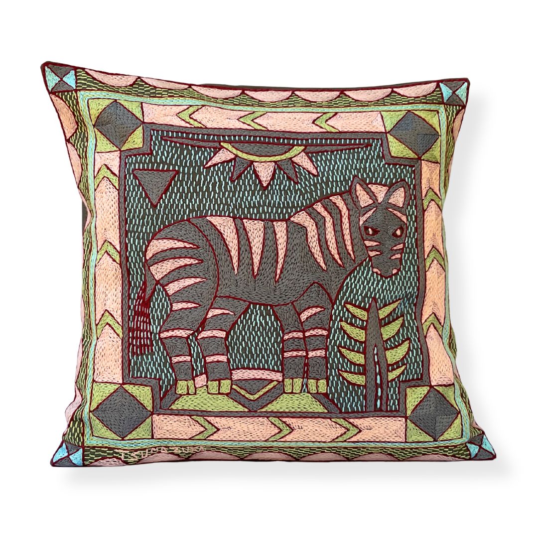 Serala Zebra Hand-Embroidered Cushion Cover