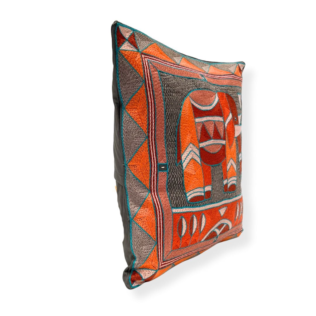 Valencia Elephant Bull Hand-Embroidered Cushion Cover