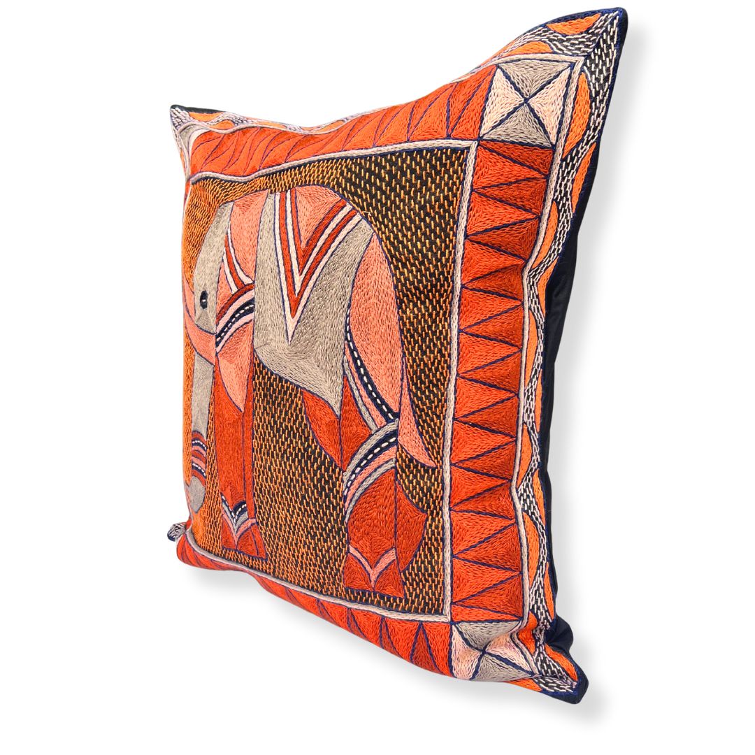 Valencia Elephant Large Hand-Embroidered Cushion