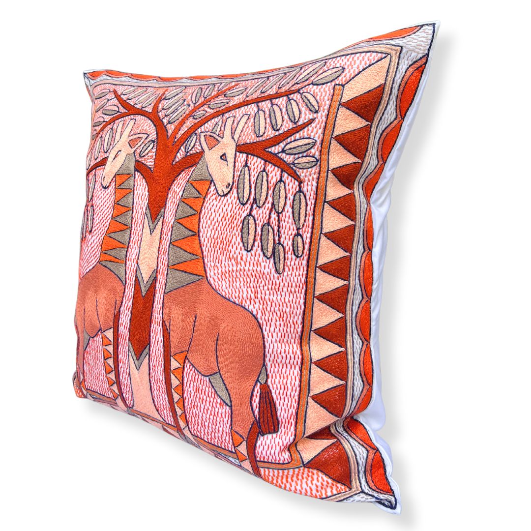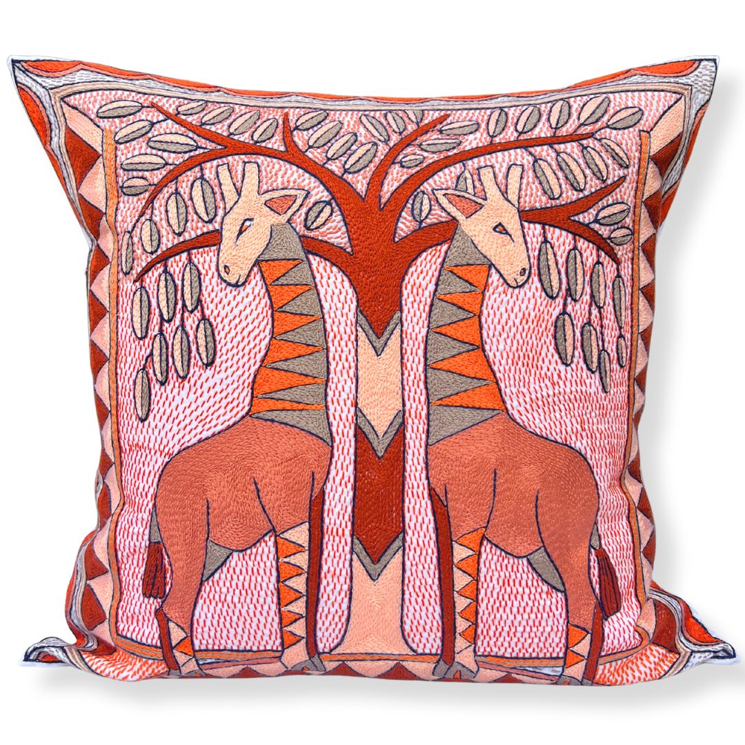 Valencia Giraffes Grazing Large Hand-Embroidered Cushion