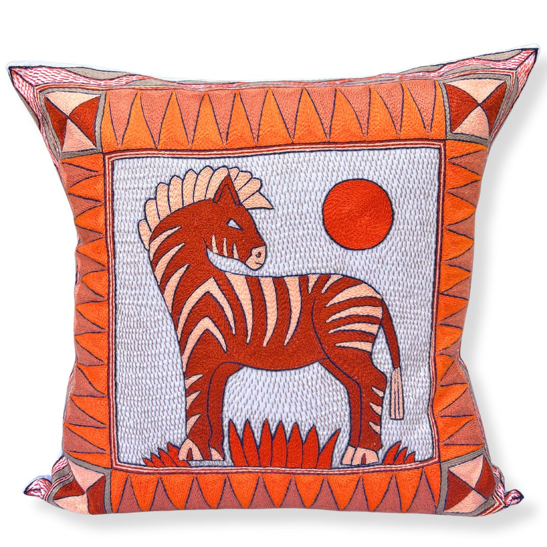 Valencia Zebra Sunset Large Hand-Embroidered Cushion
