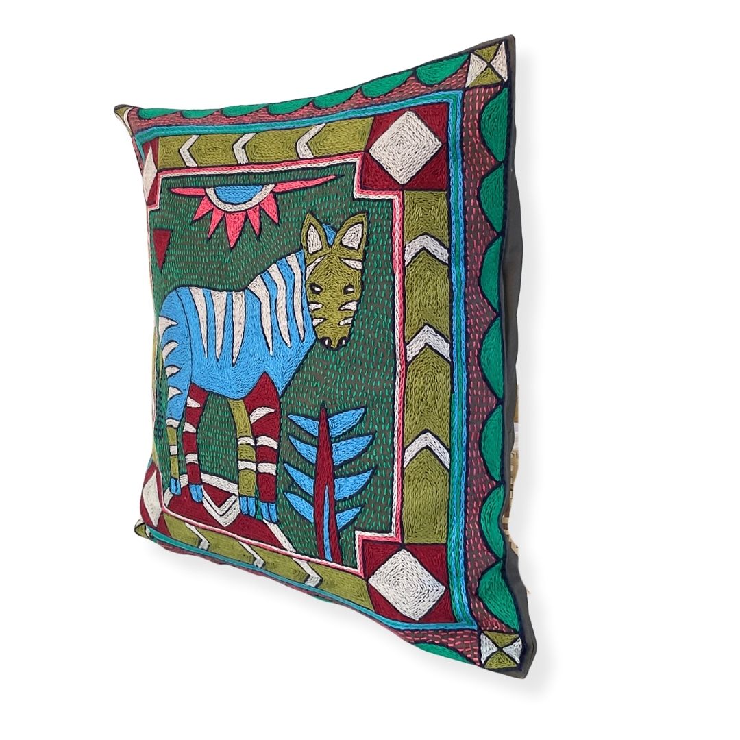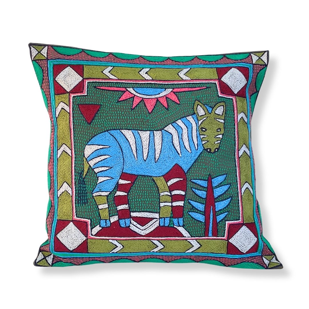 Turaco Zebra Hand-Embroidered Cushion Cover