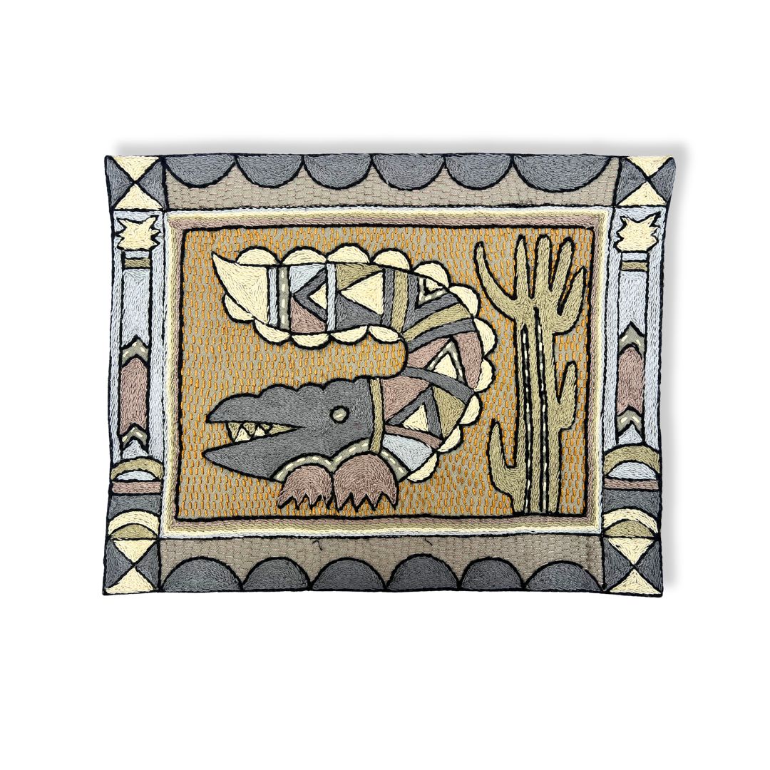 Ode to the African Savannah Crocodile Hand-Embroidered Unpadded Placemat