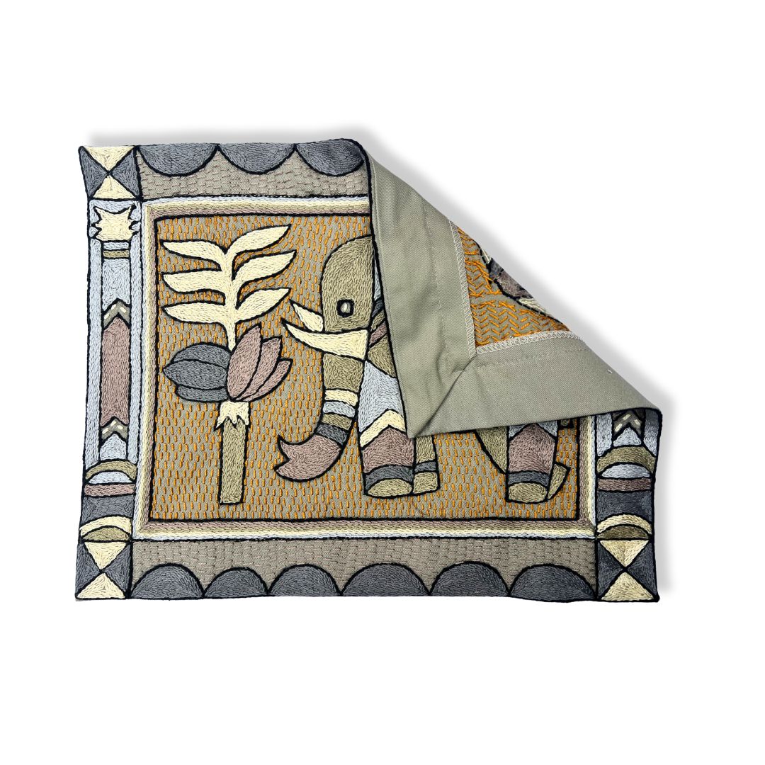 Ode to the African Savannah Elephant Cow Hand-Embroidered Unpadded Placemat