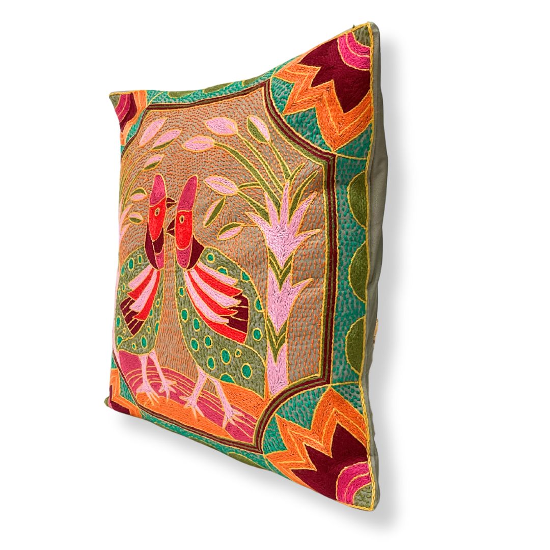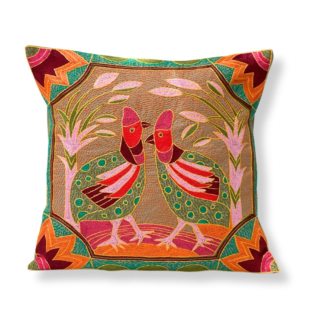Shangaan Love Guinea Chat Hand-Embroidered Cushion Cover