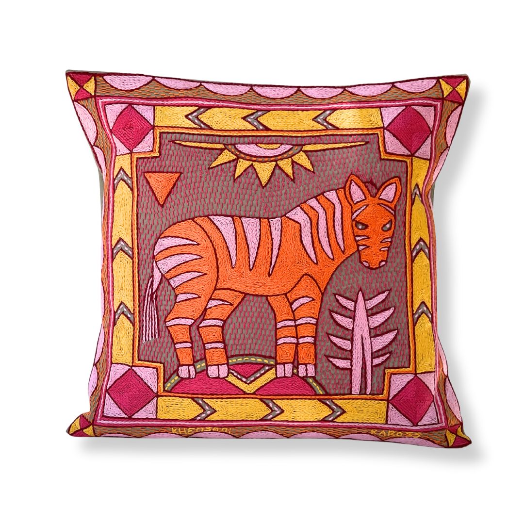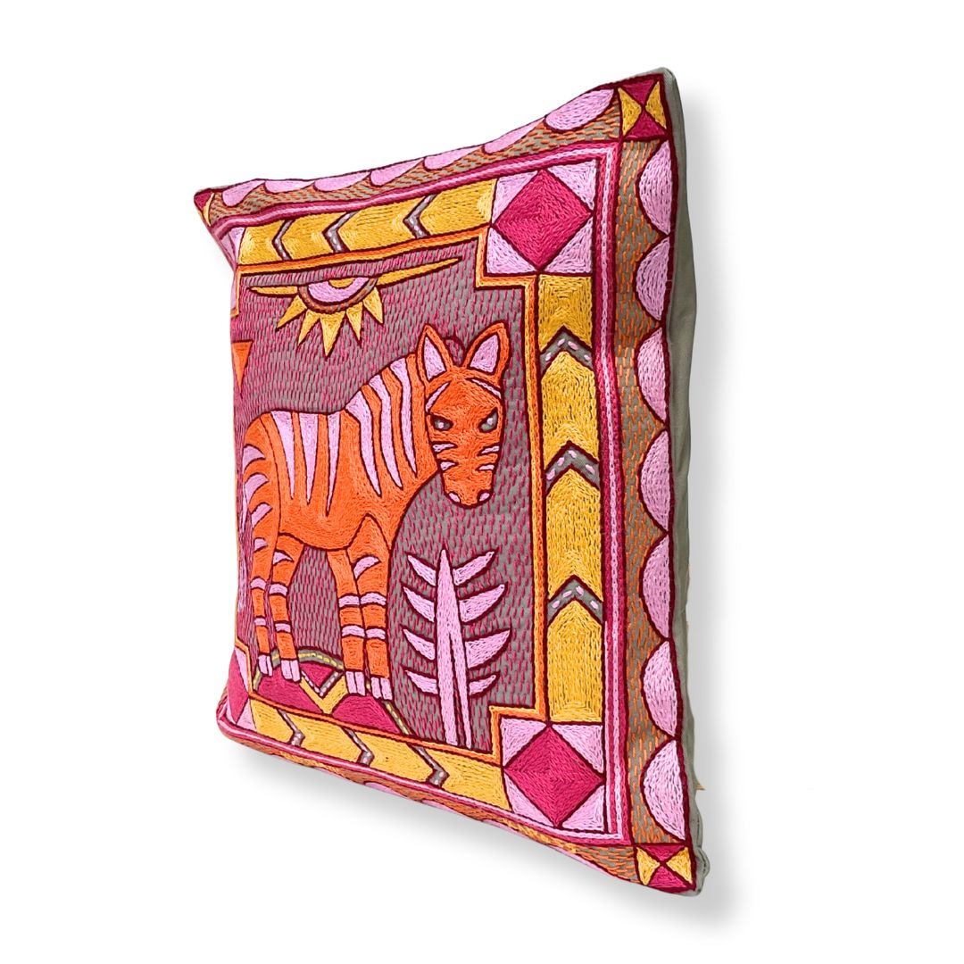 Shangaan Love Zebra Hand-Embroidered Cushion Cover