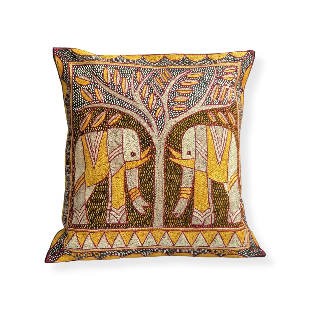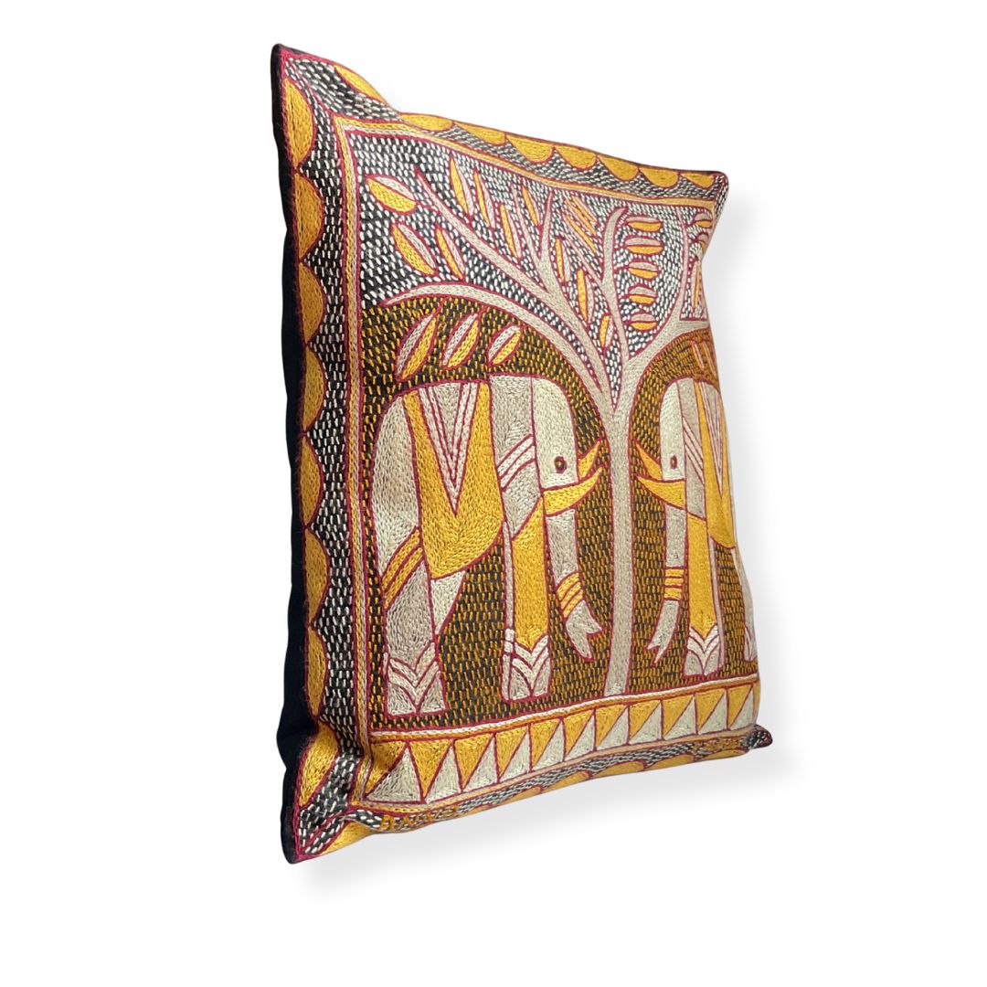 African Dawn Elephant Pair handmade Embroidered Cushion Cover