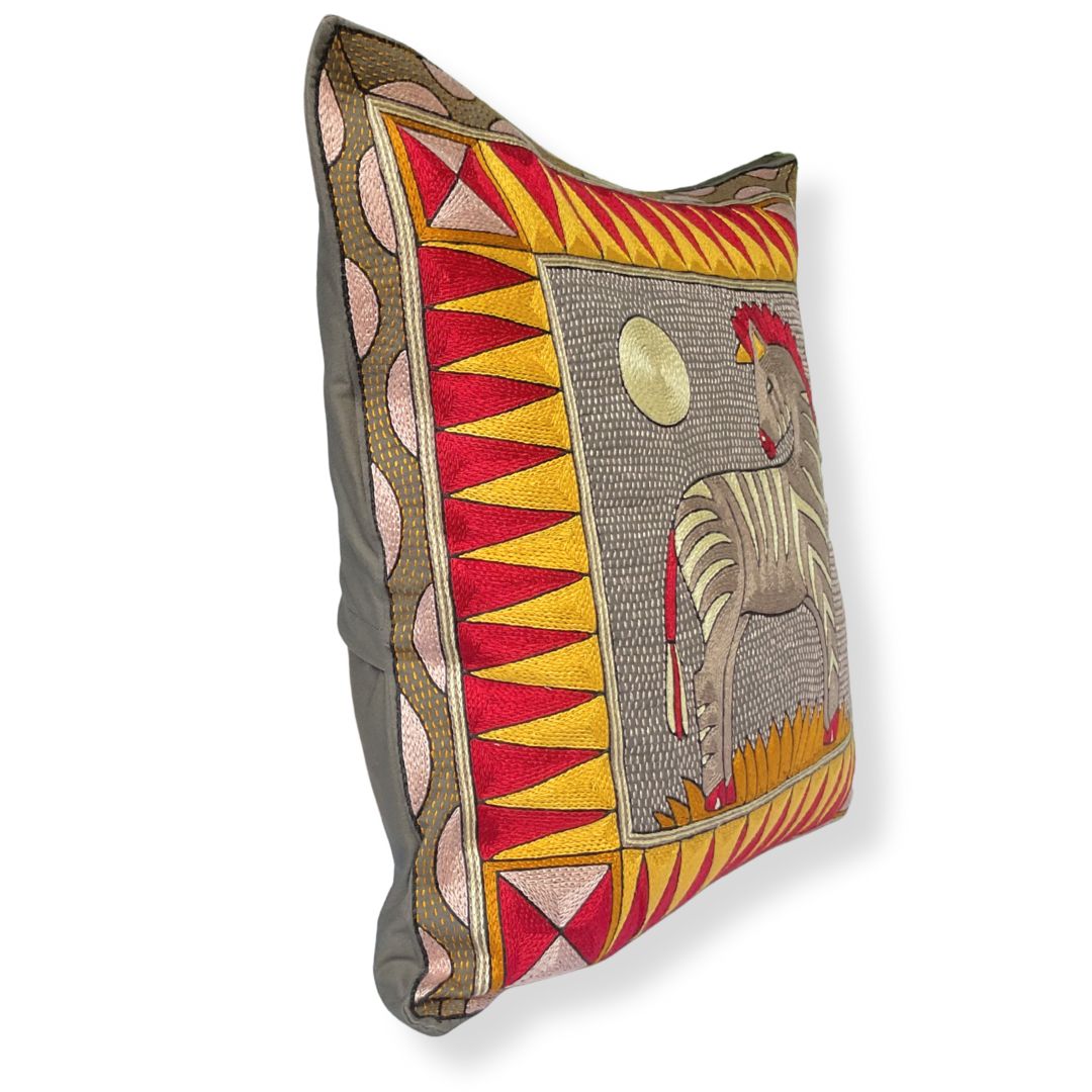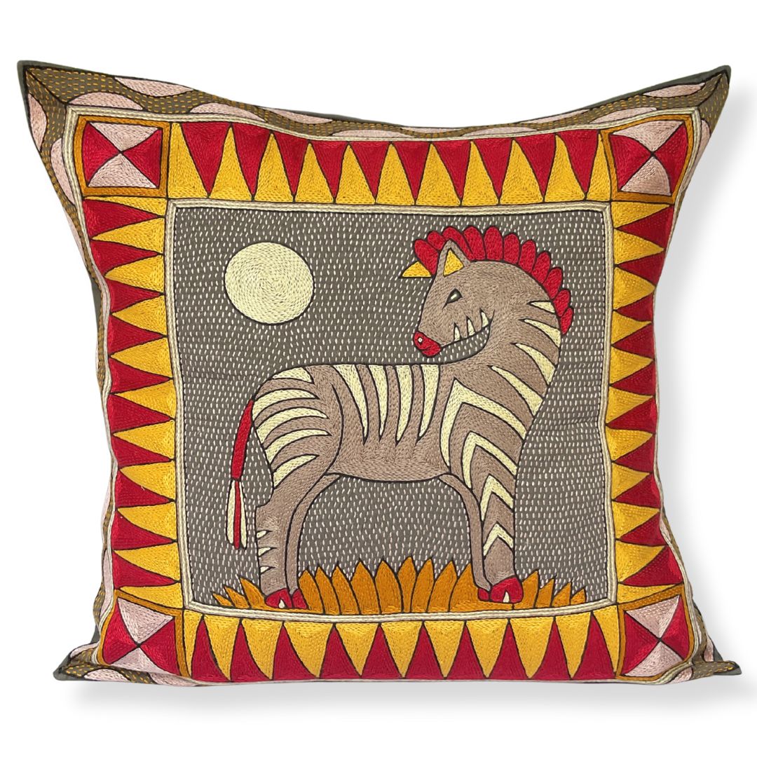 African Dawn Zebra Sunset Large Hand-Embroidered Cushion Cover.