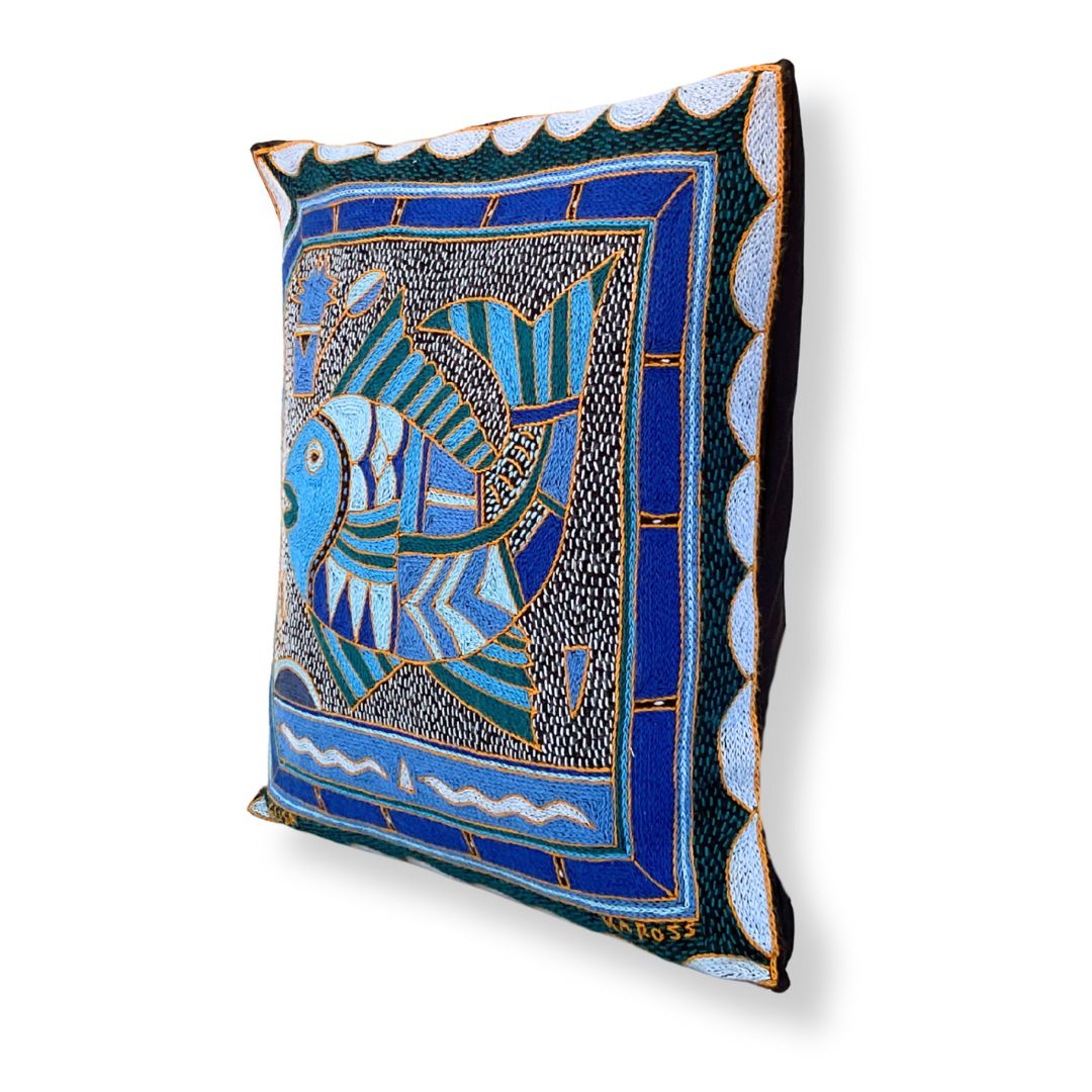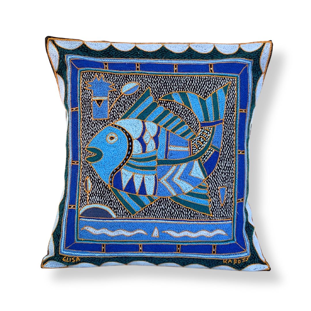 Delpht Fat Fish Hand-Embroidered Cushion Cover