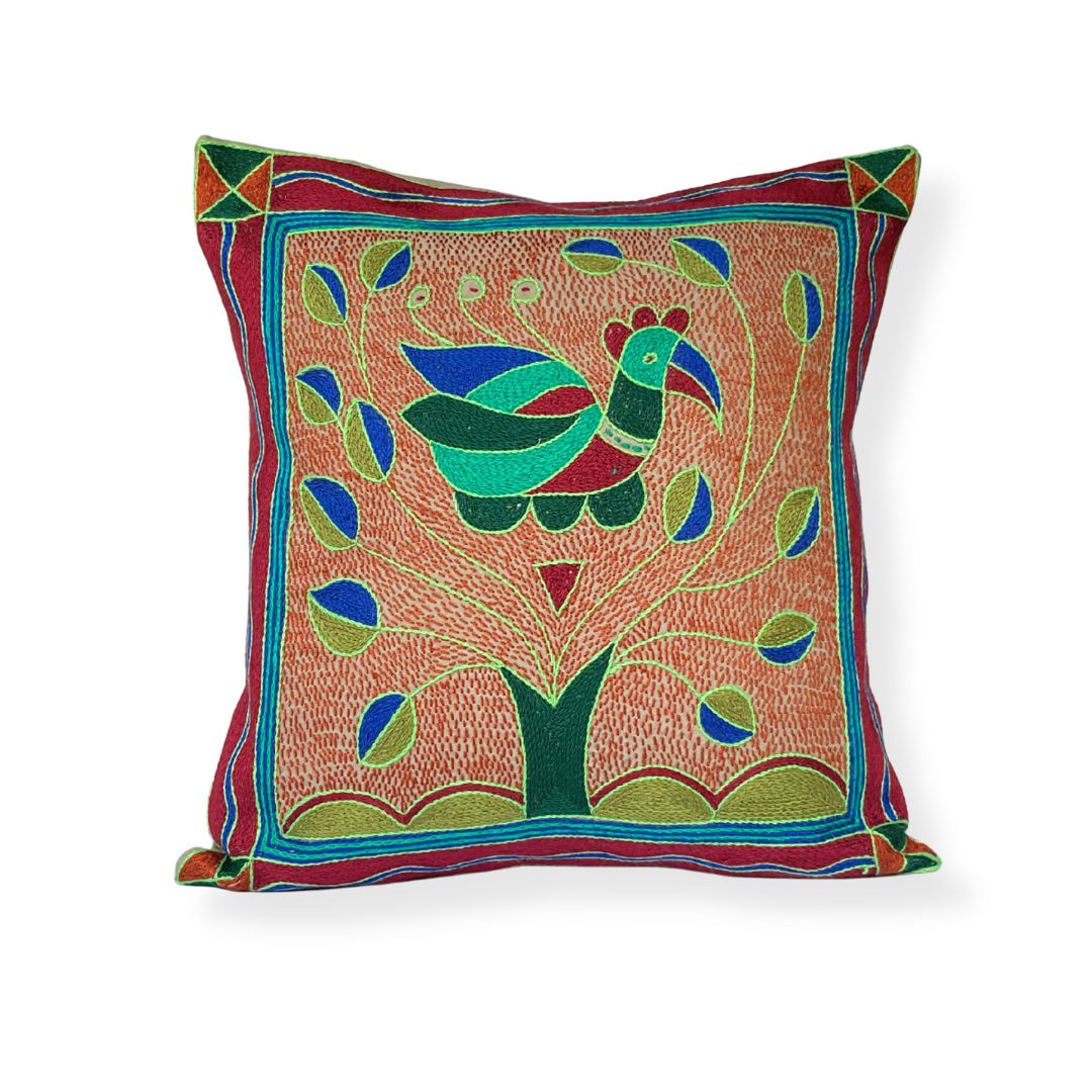 Fevertree Bird in Bush Hand-Embroidered Cushion Cover