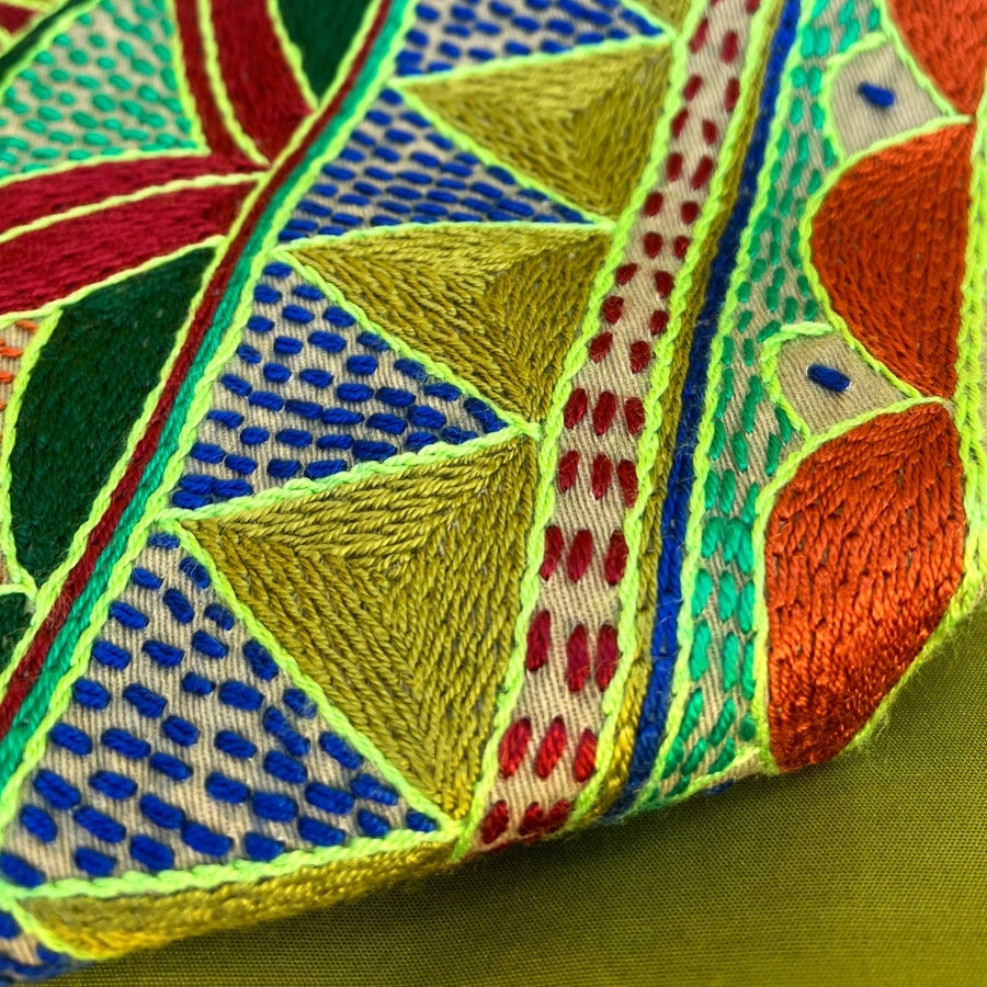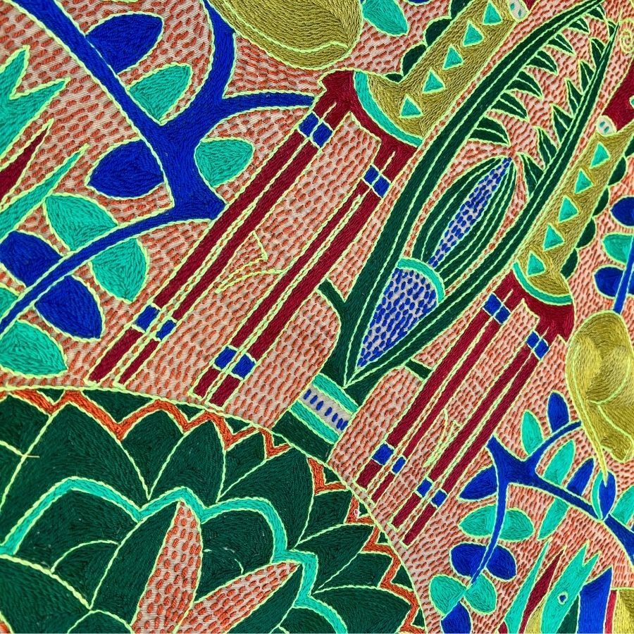 Material: 100% hand-embroidered with acrylic yarn on cotton fabric
