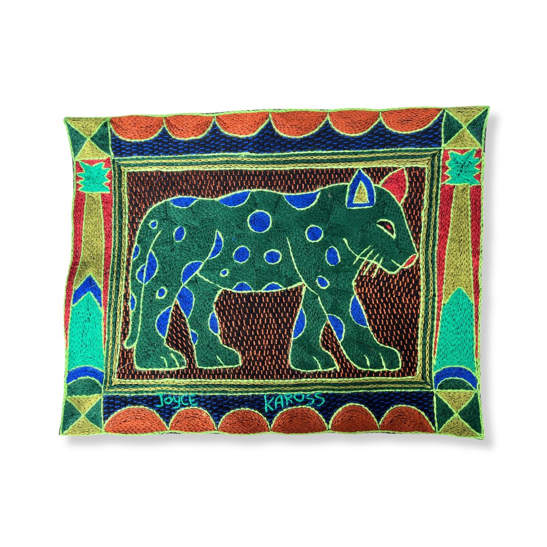 Material: 100% hand-embroidered with acrylic yarn on cotton fabric