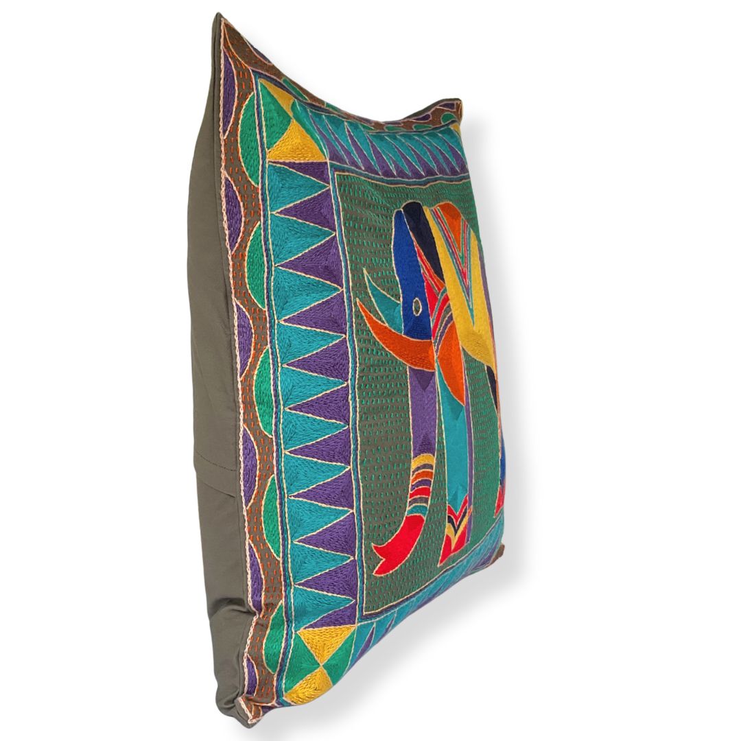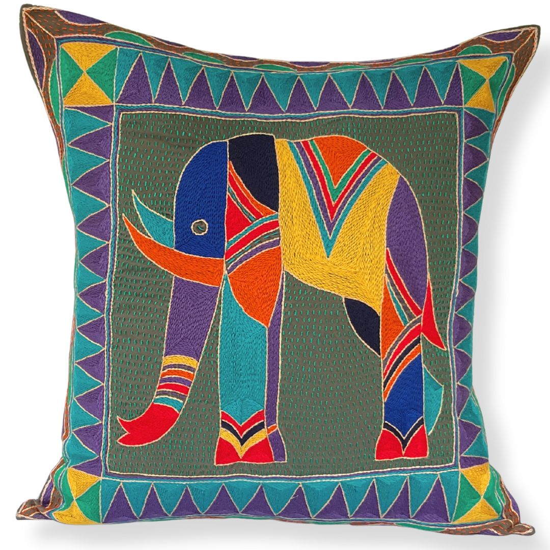 Happy Days Elephant Large Hand-Embroidered Cushion Cover