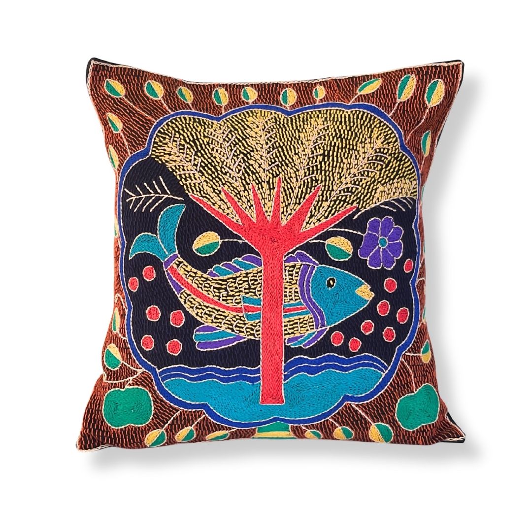 Happy Days Fish in a Cloud Hand-Embroidered Cushion Cover