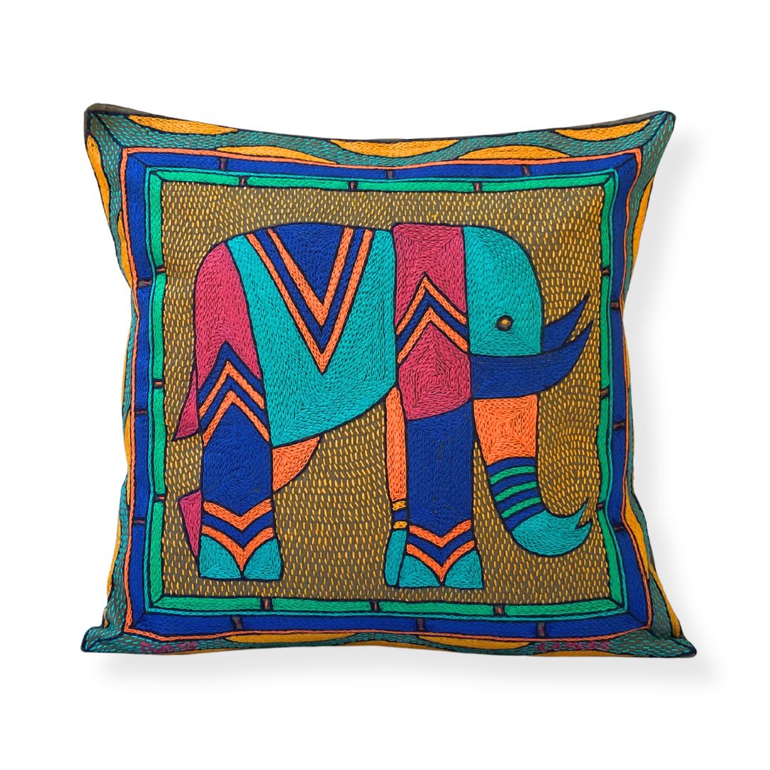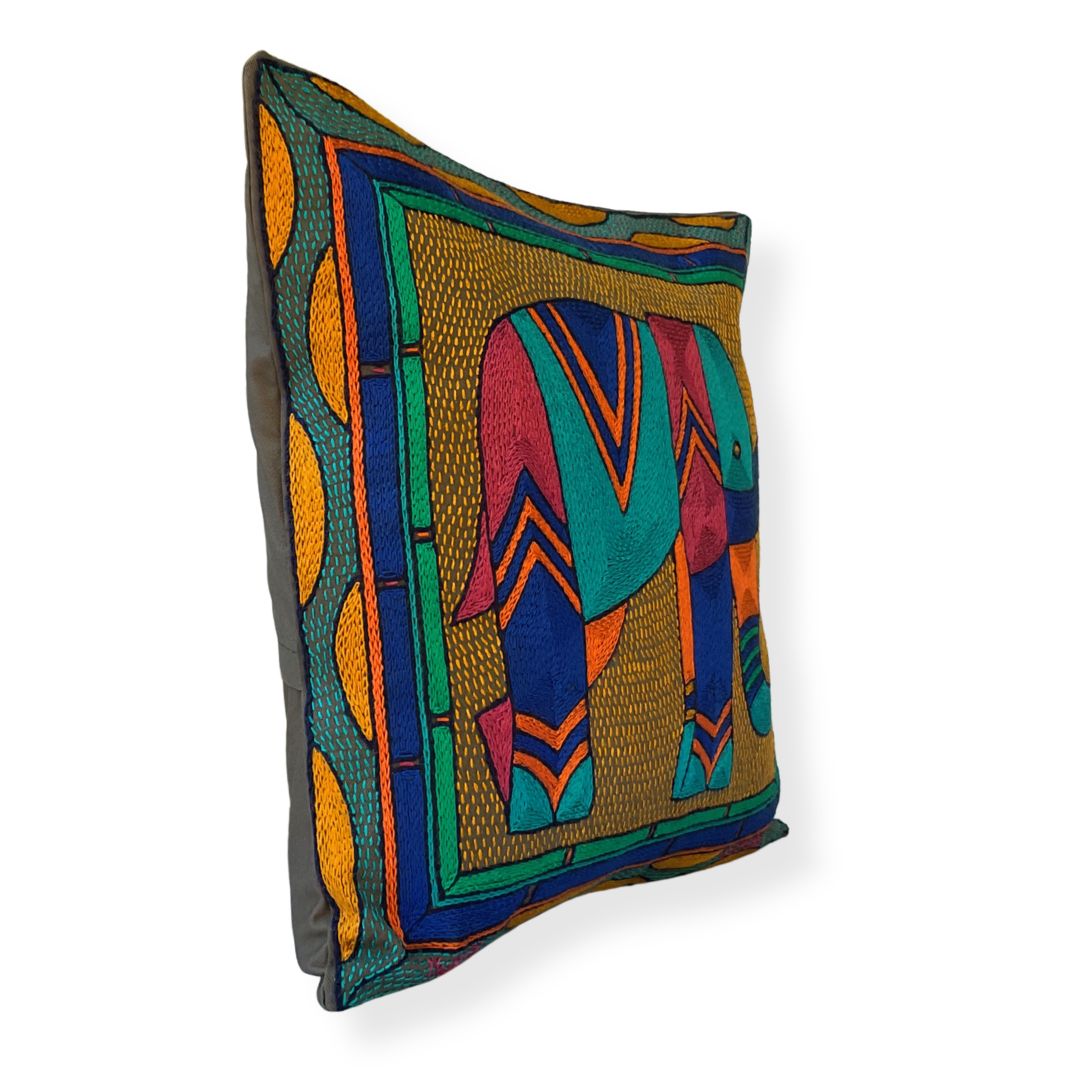 Marula’s in Autumn Elephant Hand-Embroidered Cushion Cover