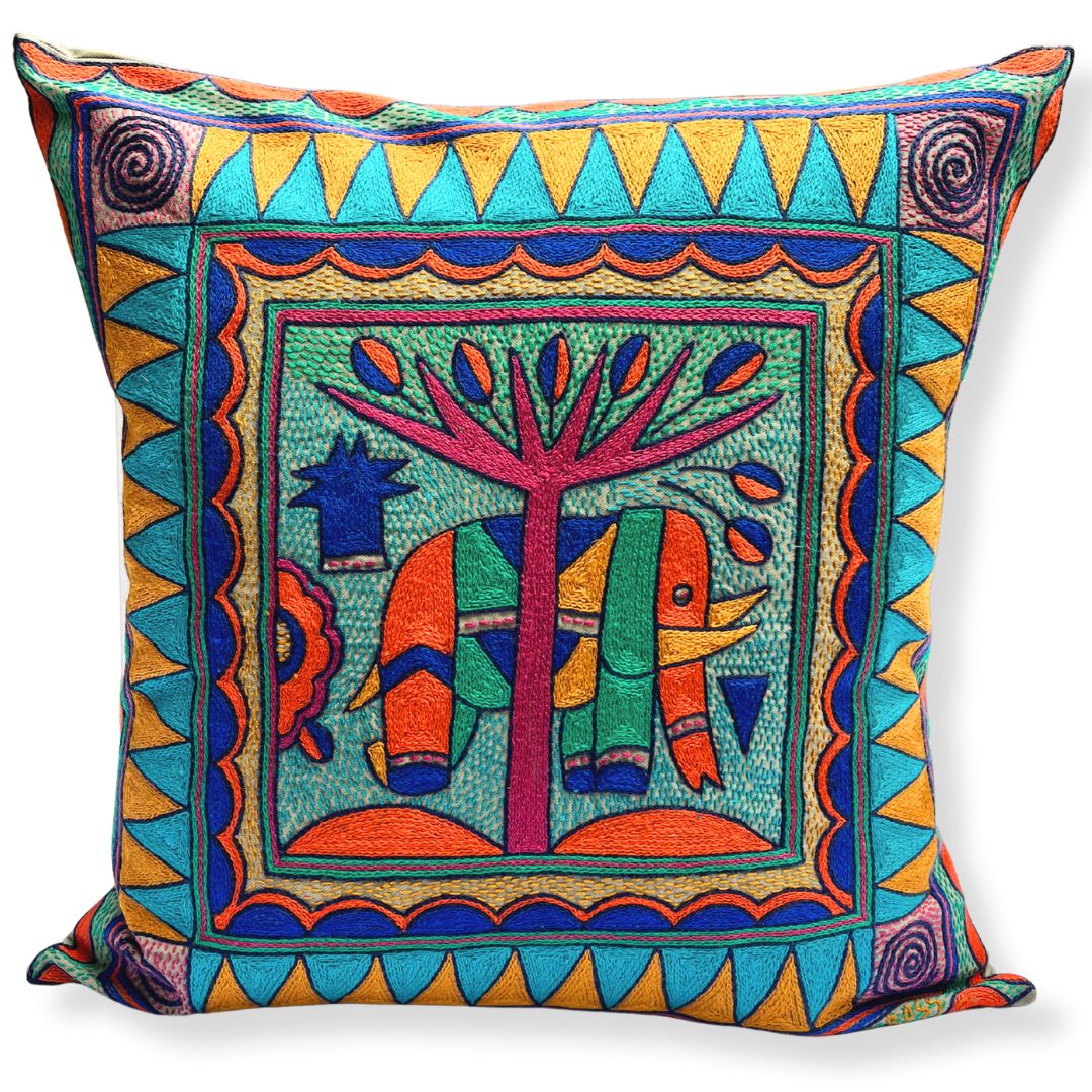 Marula’s in Autumn Elephant Behind a Tree Large Hand-Embroidered Cushion Cover