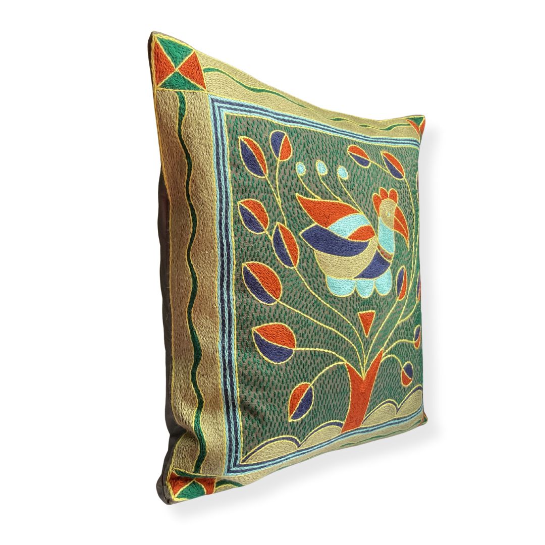Mopani Moments Bird in Bush Hand-Embroidered Cushion Cover