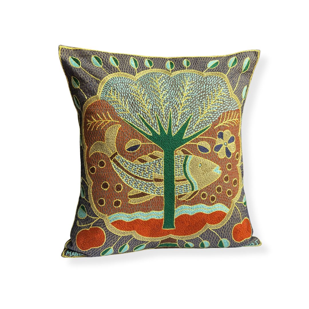 Mopani Moments Fish in a Cloud Hand-Embroidered Cushion Cover