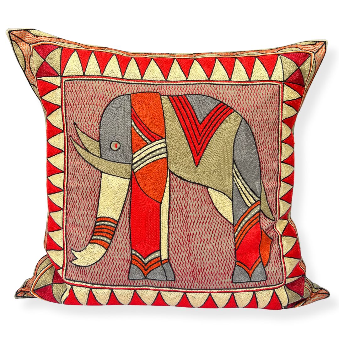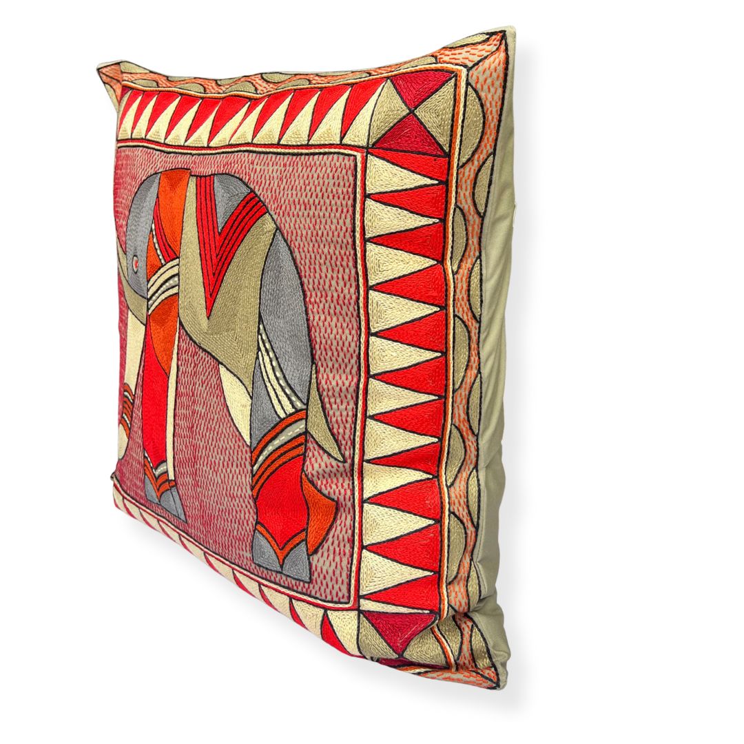 Royal Zulu Elephant Large Hand-Embroidered Cushion Cover