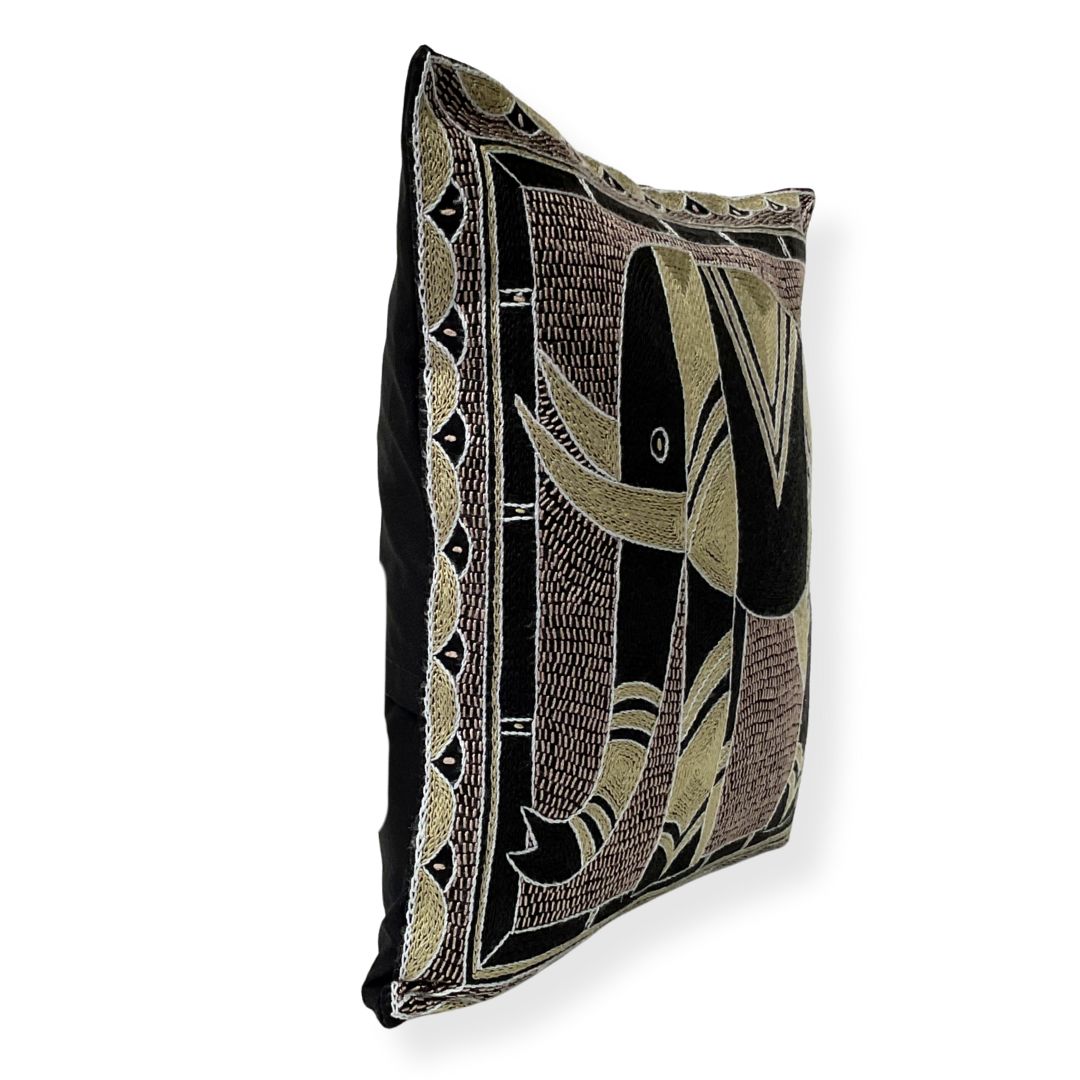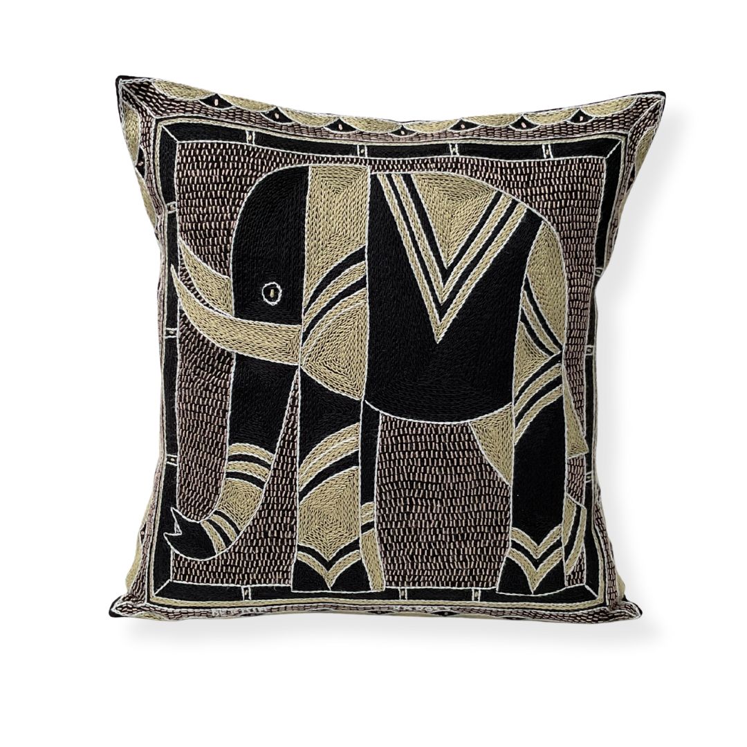 Scatterling of Africa Elephant Hand-Embroidered Cushion Cover
