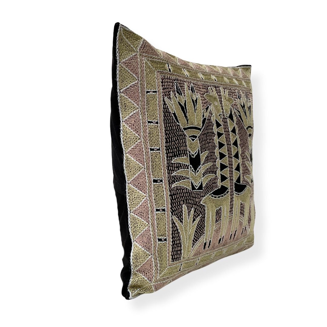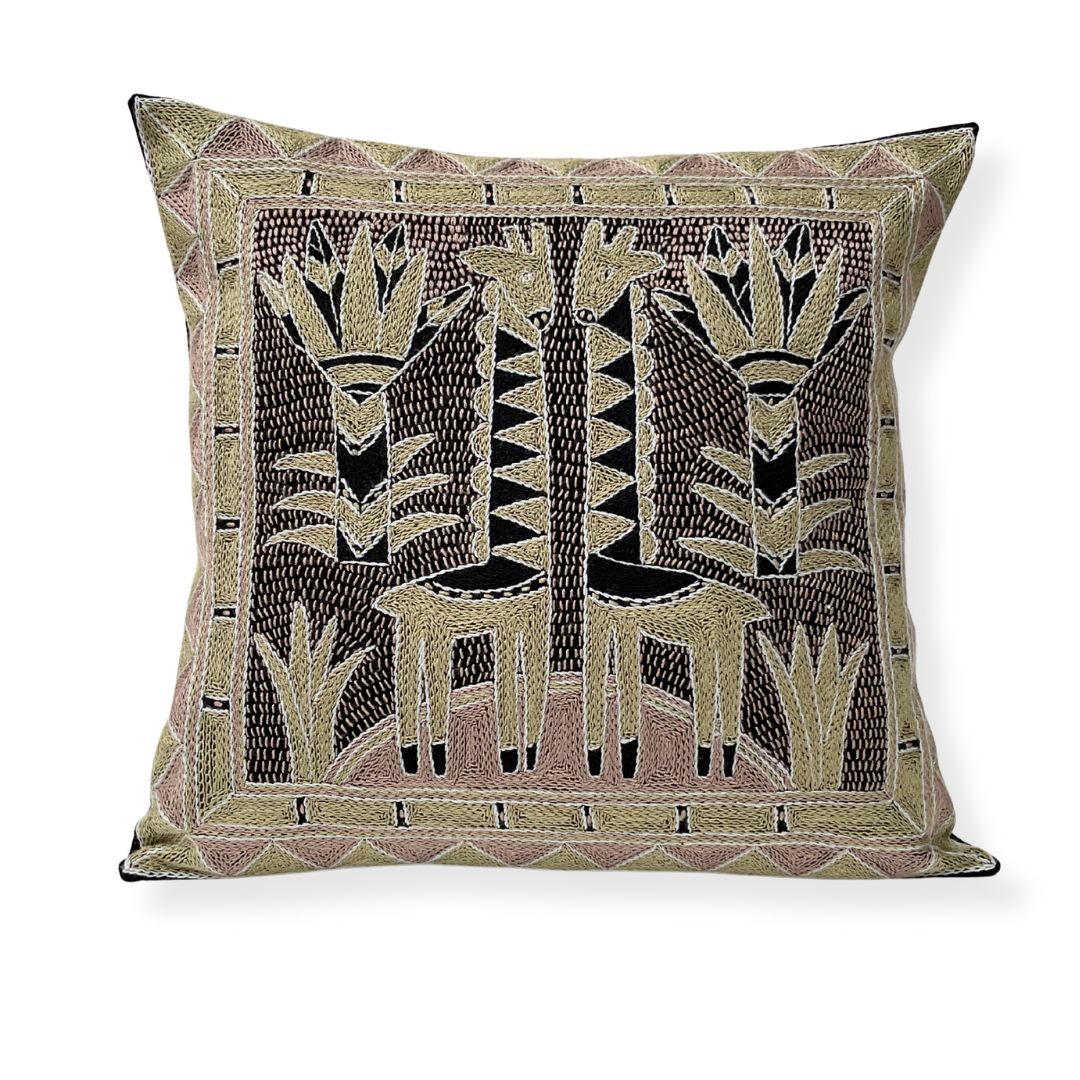 Scatterling of Africa Giraffe Brothers Hand-Embroidered Cushion Cover