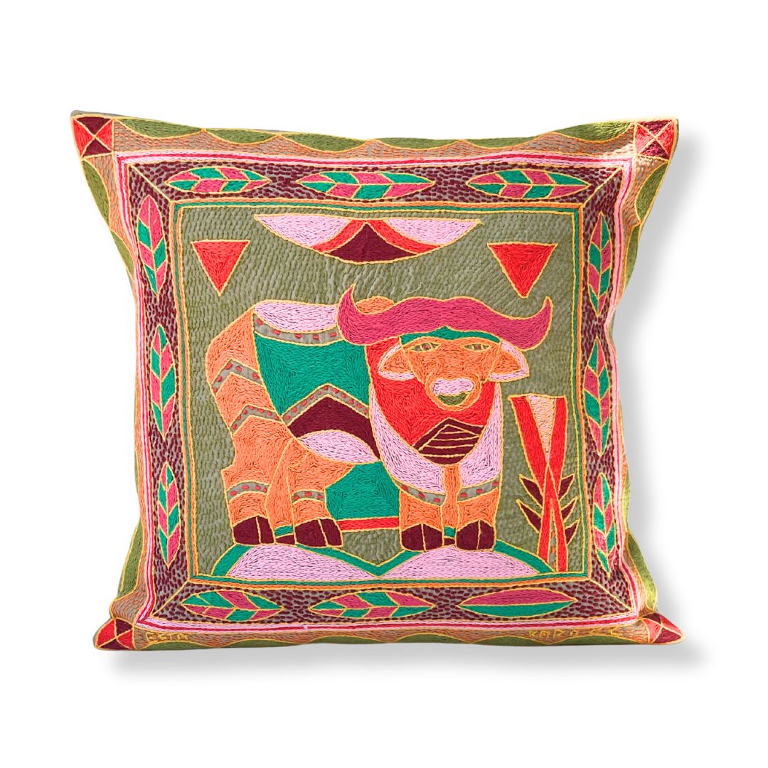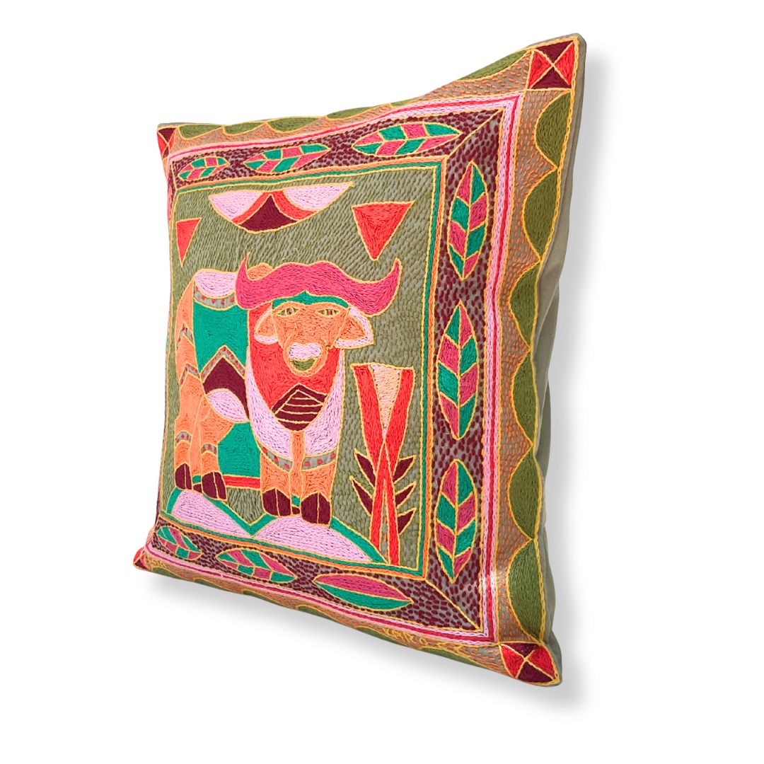 Shangaan Love Buffalo Hand-Embroidered Cushion Cover