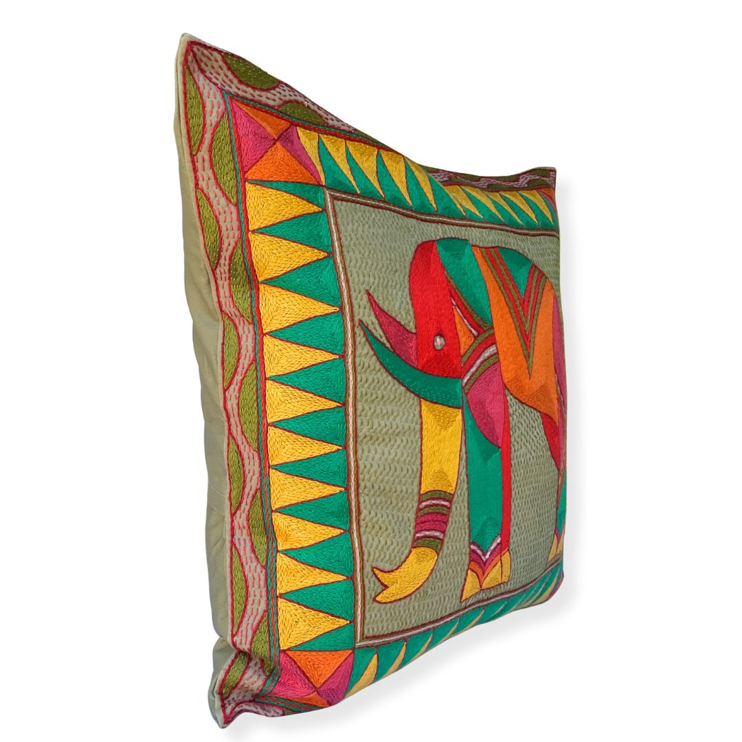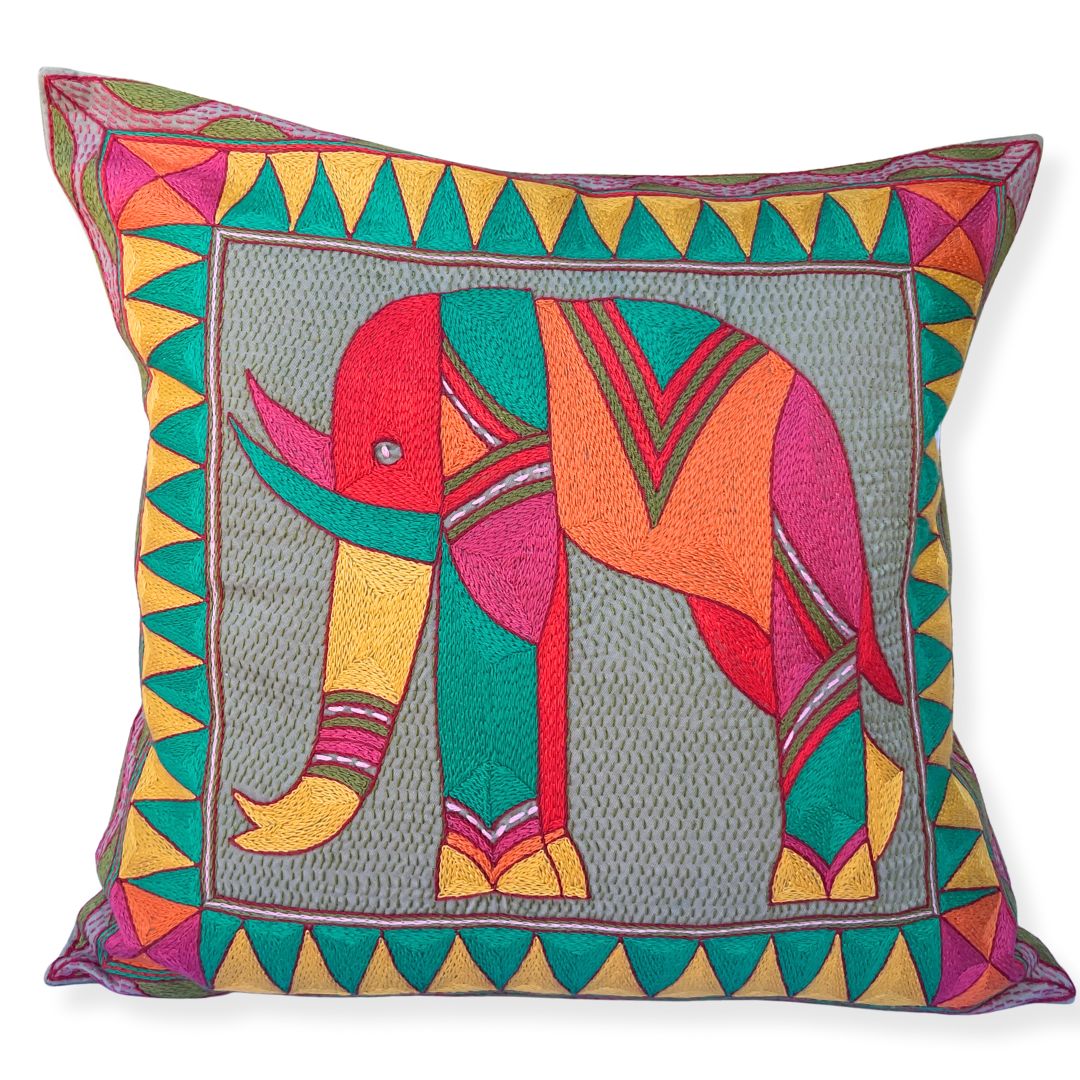 Shangaan Love Large Elephant Large Hand-Embroidered Cushion Cover