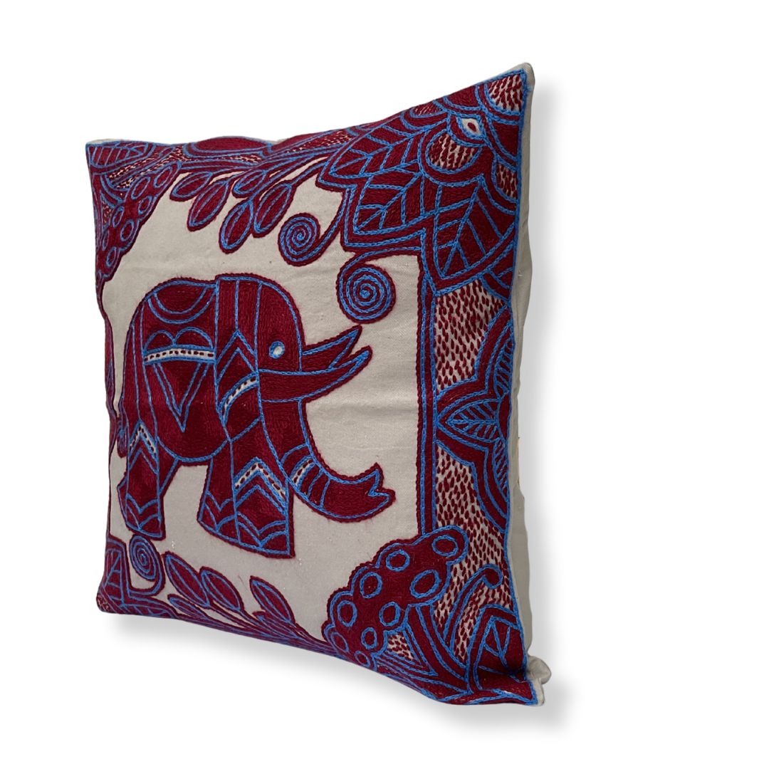 Turaco Elephant in Bloom Hand-Embroidered Cushion Cover