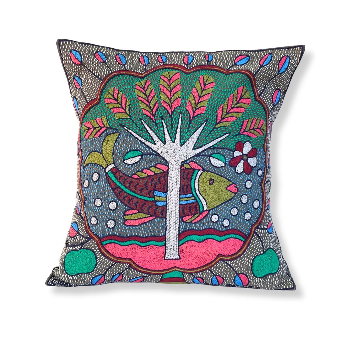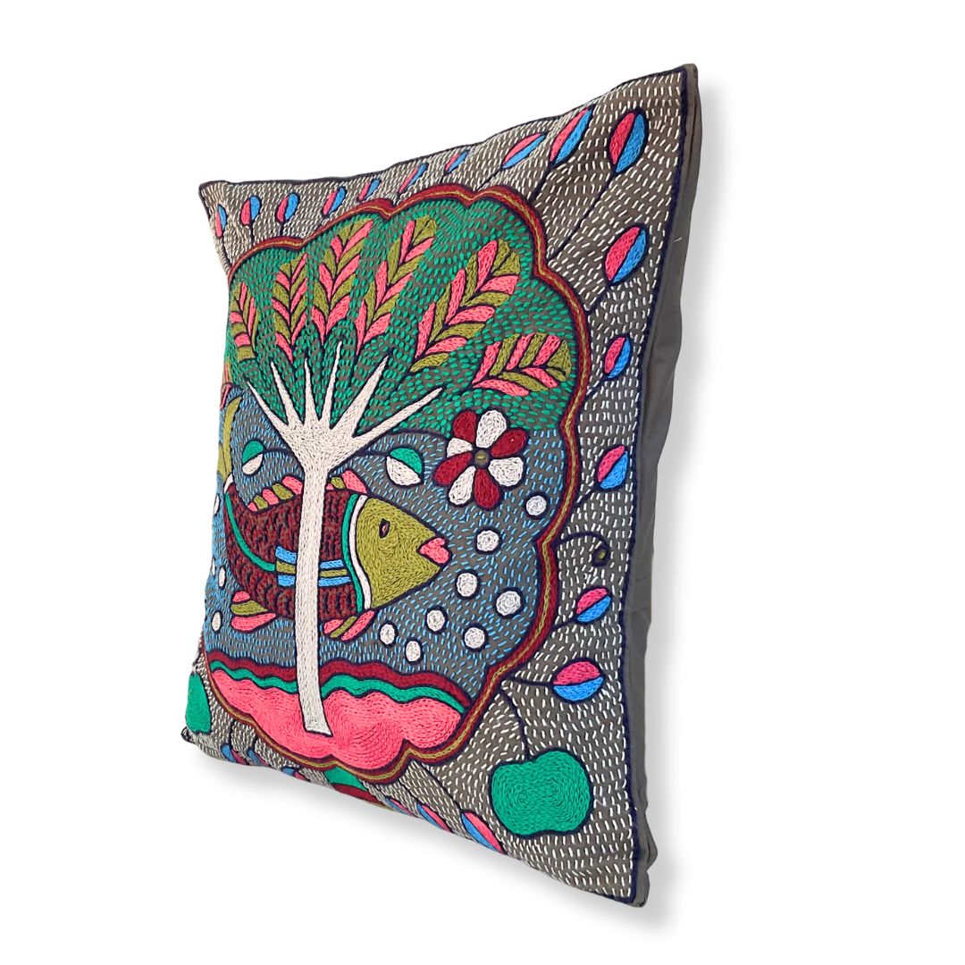 Turaco Fish in a Cloud Hand-Embroidered Cushion Cover