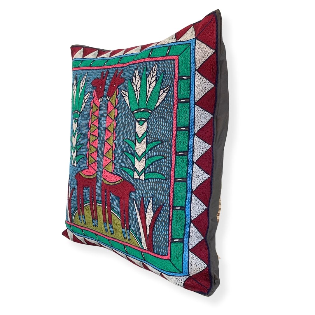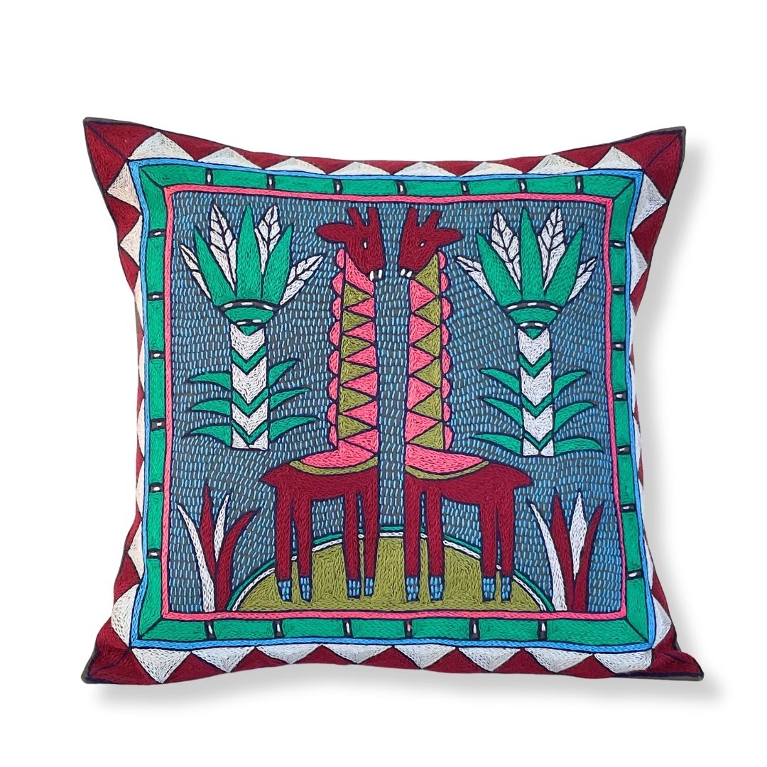 Turaco Giraffe Brothers Hand-Embroidered Cushion Cover