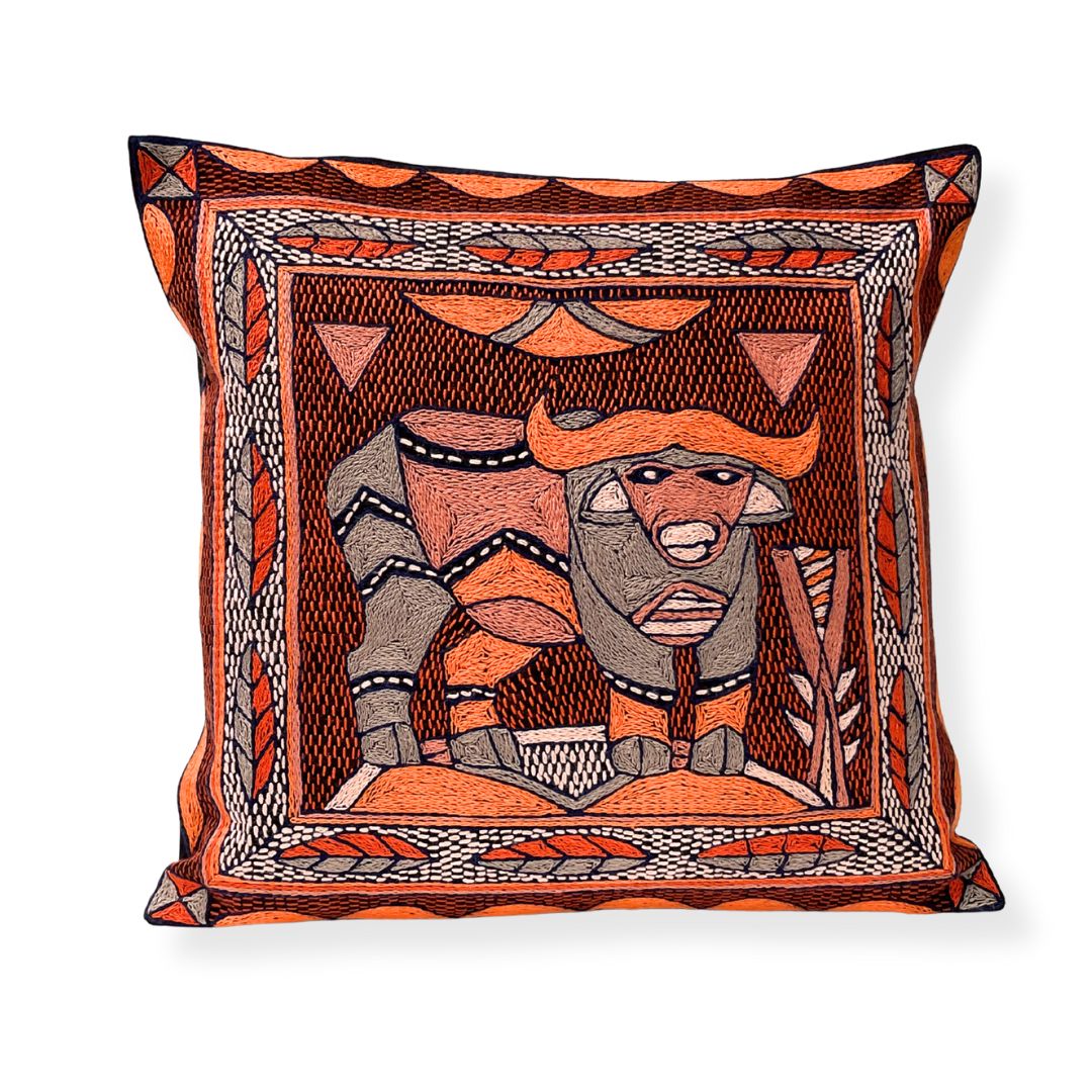 Valencia Buffalo Hand-Embroidered Cushion Cover