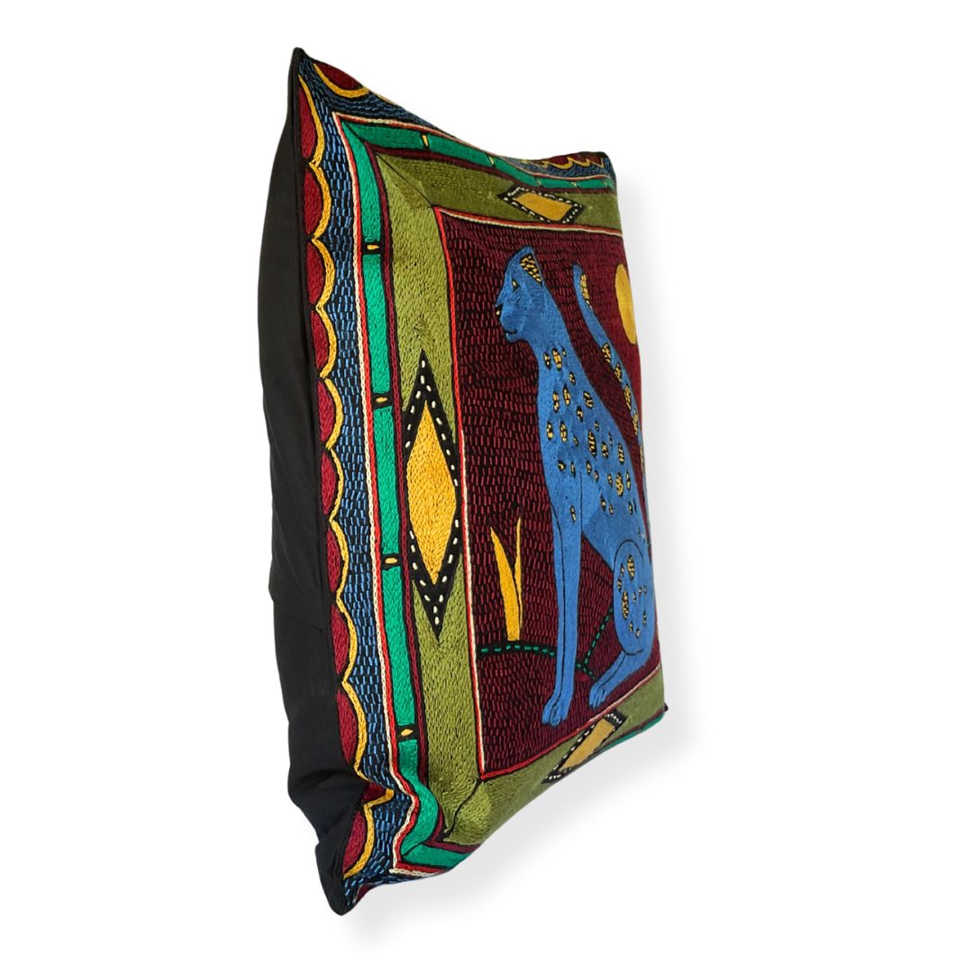 Viva Africa Leopard Large Hand-Embroidered Cushion Cover.